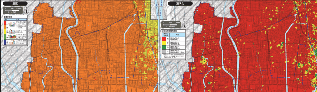 特に埋立地や低地では液状化の被害が想定されます。