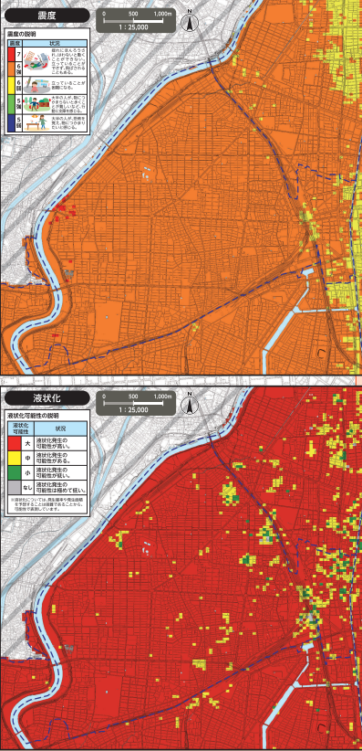 特に埋立地や低地では液状化の被害が想定されます。