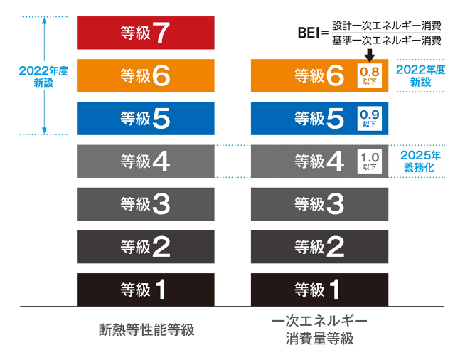 | 区分 | 断熱等級 | 一次エネ等級 | 概要 |